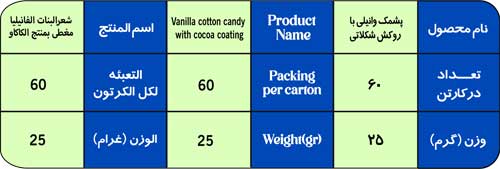 | ارزش هر عدد پشمک | 12 گرم |